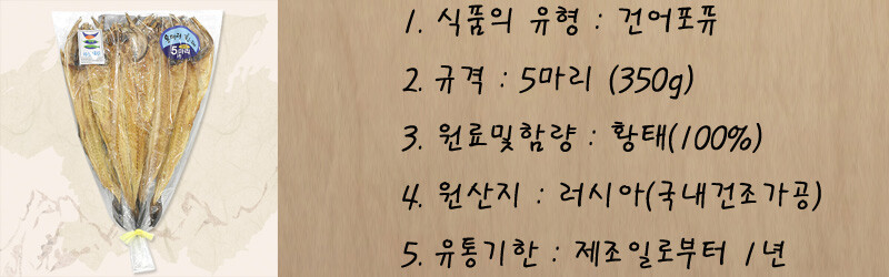 강원도 산지직송 노랑황태 하늘내린 용대리 황태포(대)5미350g