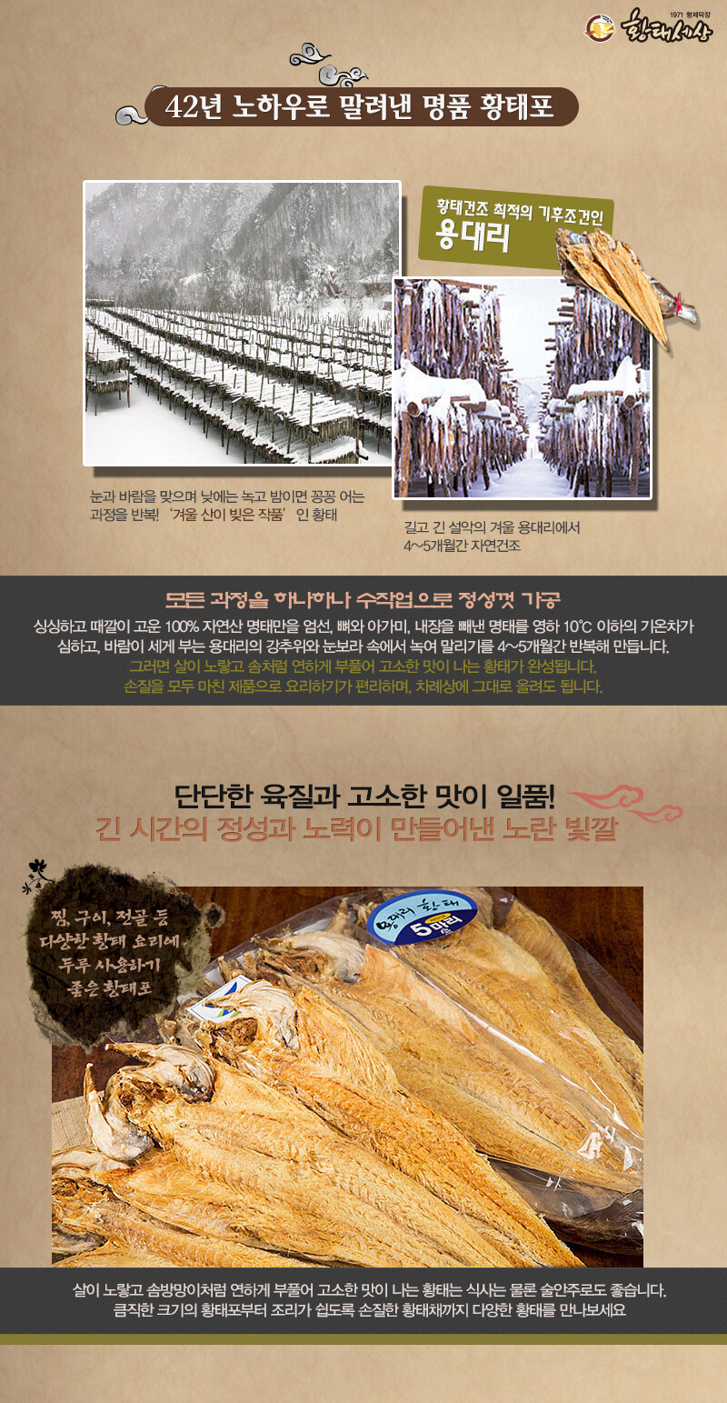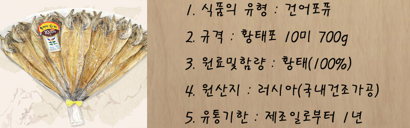 강원도 산지직송 노랑황태 하늘내린 용대리 황태포(특)10미 700g