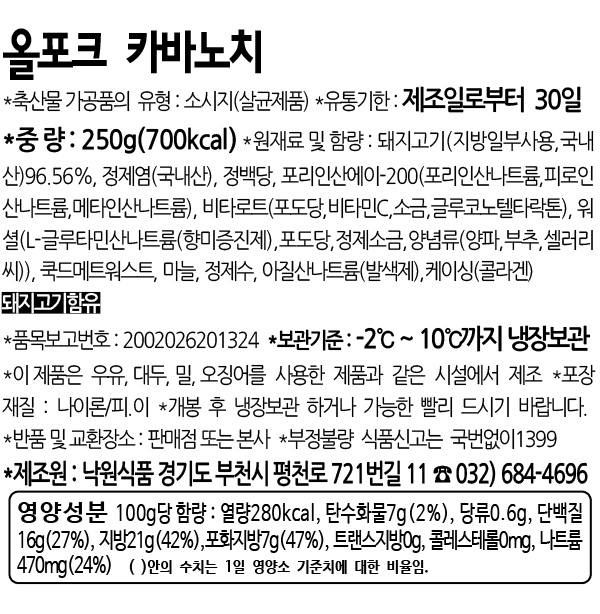 [렉커]올포크 카바노치 1pack / 250g (삼겹살 입자를 넣은 스모킹소시지)