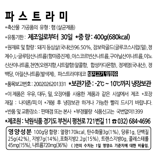 [렉커]파스트라미 1pack / 400g (국내산 돼지등심에 특제향신료를 뿌려 가열한 햄)