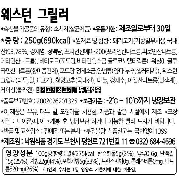 [렉커]웨스턴 그릴러 1pack / 250g (청양고추가 첨가된 매콤한 맛의 스모킹소시지)