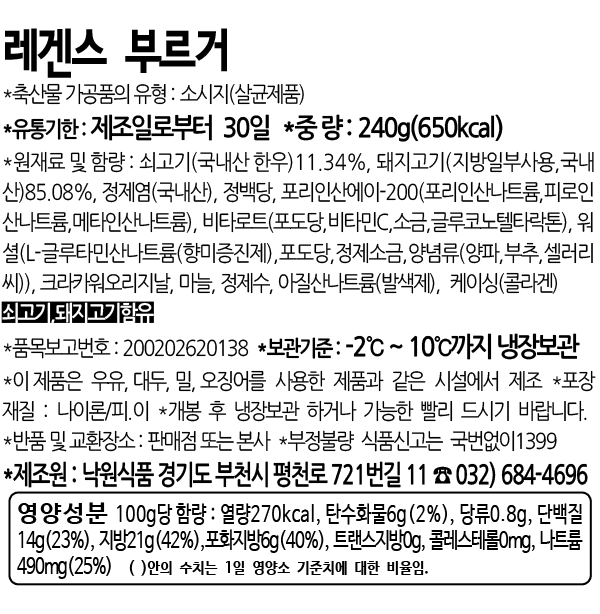 [렉커]레겐스 부르거 1pack / 240g (한우고기와 돼지고기를 섞어 입자를 살린 소시지)