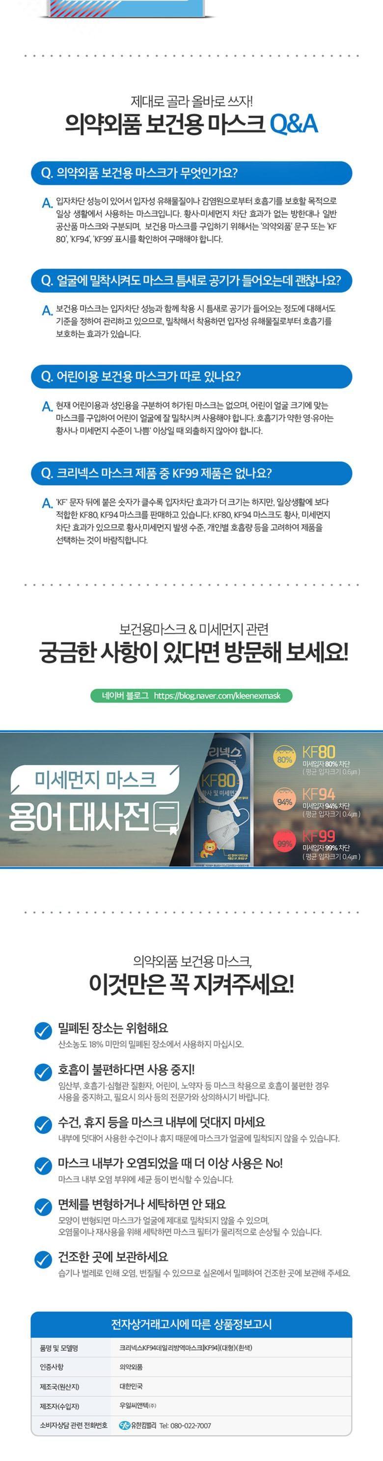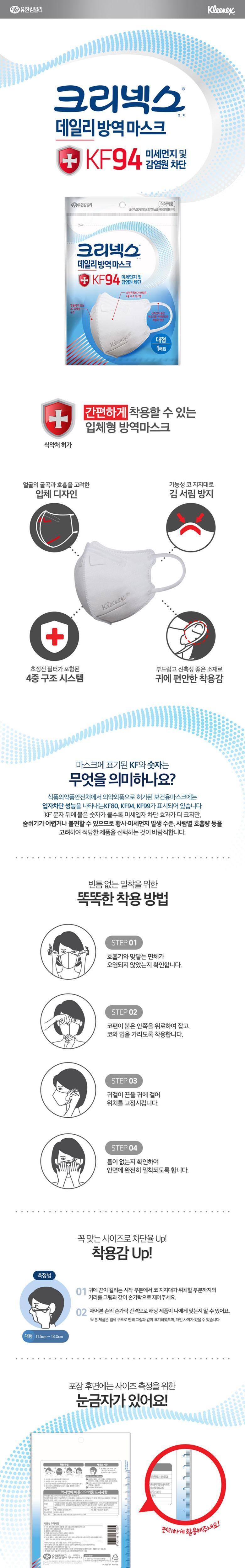 유한킴벌리 크리넥스 데일리방역 마스크 KF94 새부리형 화이트 50개